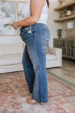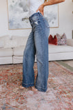Experience effortless style with our Katrina High Waist Distressed Denim Trousers. Featuring a trouser-style hem, high rise waistline and wide leg cut with subtle distressing, these classic jeans in a medium wash will be your go-to pair of jeans. Get ready to be comfortable and look fabulous.