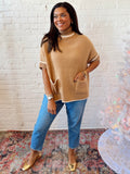 - One size Tan Poncho with ivory trim