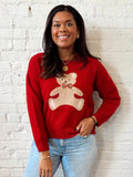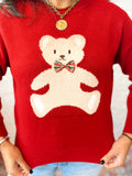 - Classic Red Sweater with Teddy Bear Graphic