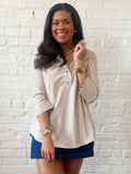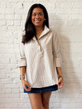 - Tan and white striped tunic top