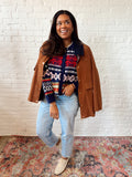 - Navy Cardigan with Graphic Fair Isle Pattern