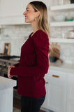 This Ask A Question Ruched Sleeve Top will be the perfect wardrobe staple for any occasion. A jacquard knit gives a luxurious look. The sweetheart neckline and puff sleeve add a flattering, feminine touch. Look stunning in this rich color top.