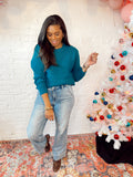 • Casual Brunch Waffle Knit Sweater in Ocean Teal