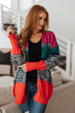 Elevate your wardrobe with this Xmas Tree Striped Cardigan. Crafted with a perfect blend of oversized comfort, tunic length, and multi-colored stripes, this cardigan is designed to keep you cozy and stylish. Its generous pockets provide the perfect finishing touch and convenience. Switch up your style in the most comfortable way!