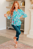 Transform your closet with the Lizzy Top in Aqua and Pink Paisley. Made from Bulgari, this top features a gabby neckline and button rolled sleeve tabs for a comfortable, yet eye-turning piece. The 3/4 sleeve and scoop hem add flow to the already stylish piece. Experience comfort and style in one with the Lizzy Top.