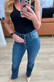 Show off your curves in these Pippa High Rise Button Fly Dad Jeans from Judy Blue. Sleek and stylish, they feature a high waist, hidden button fly, straight silhouette, a medium wash, and 4-way stretch for maximum comfort. Ready to take your look up a notch? Choose Pippa.