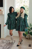 Look your best in the Seeing Spots Ruffle Dress! This dotted pattern satin print dress features a frill mock neckline, layered cap shoulders, long bubble sleeves, and ruffle detail to make a truly eye-catching look. Make a statement in this special dress - you'll be ready for any occasion.