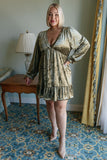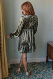 This Velvet Verve V-Neck Dress will make you stand out in any evening. It features a crushed velvet fabric, long sleeves with gathered cuffs, a deep V-neck, and a ruffled hem. The luxurious design will add a touch of elegance to any ensemble.
