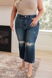 Look stylish and feel comfortable with our Whitney High Rise Distressed Wide Leg Crop Jeans from Judy Blue. With a high rise fit, dark wash, distressed detailing and raw hem, this jean offers the perfect blend of comfort and chic style.