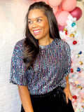 This beautiful Evening of Stars Sequin Top will shine all night with its sequin mesh and relaxed fit. Sparkle your way through the night with its round neckline, dropped shoulders and raw hem. Fully lined for extra comfort.