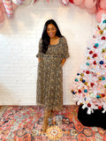 Feel fabulously floral in this Floral Moment Maxi Dress! Crafted from soft poly chiffon in a ditsy floral print, this piece is sure to be the trendiest around. With a square neckline, 3/4 length sheer sleeves, and delicate ruffle details, this dress is sure to make a statement. With a fully lined bodice and cased elastic waistband, you'll keep your style game on point and look breathtaking while doing it. It's perfection!