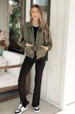 Our Miss You More Sweatshirt is the perfect way to stay warm and cozy. Featuring a high stand mock neckline, contoured seams, snap pockets and a zip front, this timeless piece is designed for a comfortable and flattering fit.