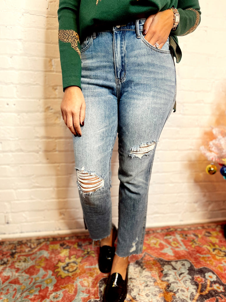 Experience the perfect fit and superior comfort with our Nora High Rise Rigid Magic Destroy Slim Straight Jeans from Judy Blue. Crafted from rigid cotton and 4-way stretch back panel, this unique blend features a medium wash, distressing, and high rise for a comfortable and stylish fit every time. Get ready to tackle any day with these amazing jeans!