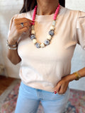- Bead material- Wood & Recycled Glass Bead beads & Large Polymer Clay Disk Bead