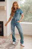 Sylvia Short Sleeve Denim Jumpsuit from Judy Blue is perfect for everyday wear and features a short-sleeve silhouette, zip closure, snap waistband, 4-way stretch, front pockets and a straight leg cut. Its comfortable, stylish design, will elevate any wardrobe.